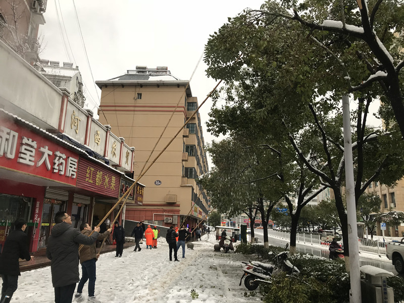 瑞雪兆丰年,1月8日晚间,我县迎来2020年第一场大降雪,下了一夜的雪,给大地万物盖上了一层浓浓的银妆,但同时也给城区绿化树木和人们的出行带来了不便。1月9日一大早,县人民医院积极组织行政后勤干部职工80余人开展除雪护绿活动。