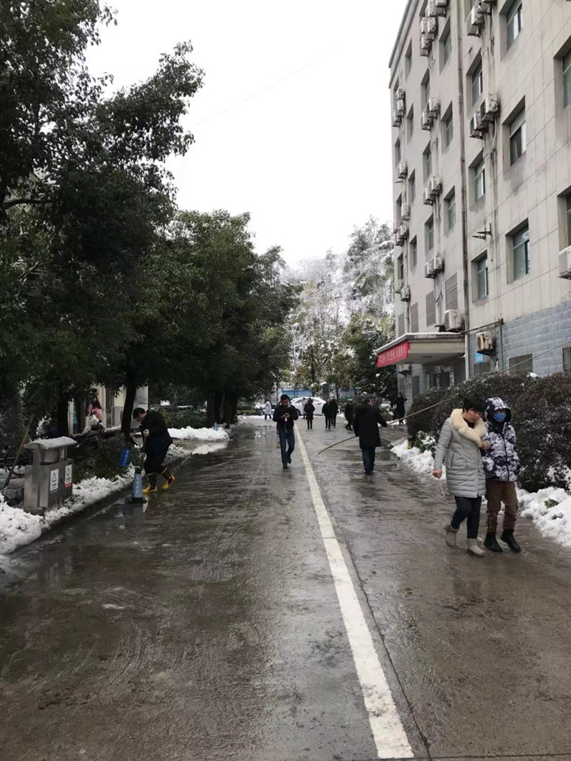 院内铲雪护绿,保障病人及家属就医“绿色通道”