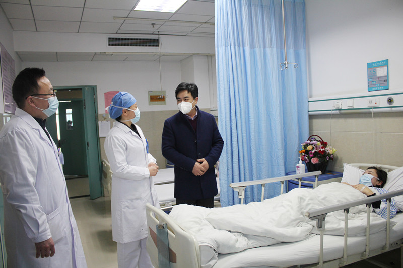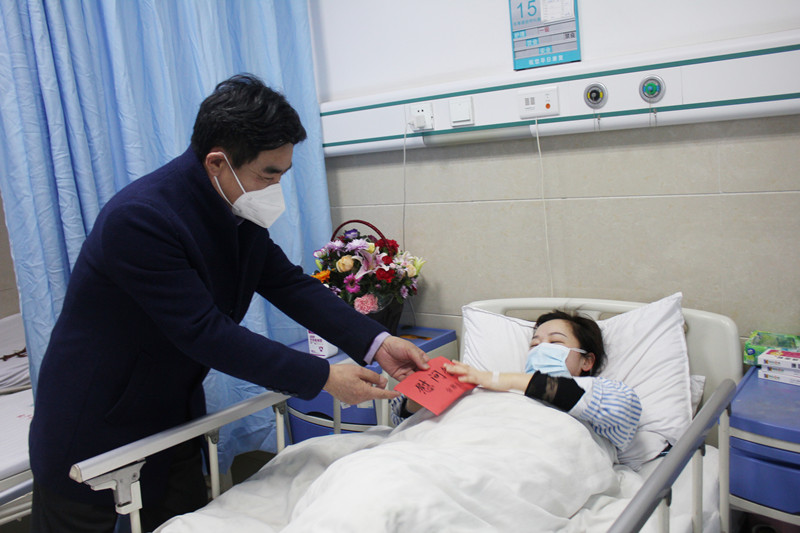 洪主席专门来到病房亲切慰问我院因突发疾病被迫从防控第一线撤离的护士张晓娟,为她送去慰问金,感谢她及县人民医院广大医务工作者舍小家,顾大家的博大情怀。洪主席动情的说道:在疫情发生后,县人民医院医务人员勇于担当,冲在一线,为广大群众健康护航,是最美的逆行者,让我们深受感动,并亲切叮嘱张晓娟同志要安心养病。