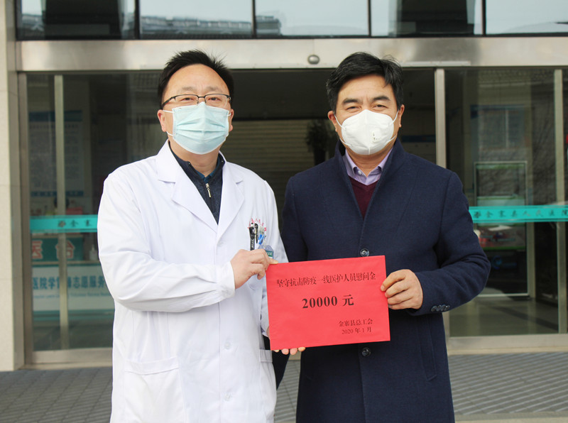 为做好新型冠状病毒感染的肺炎疫情防控工作,金寨县总工会积极引导广大职工群众和工会干部做好新型冠状病毒感染的肺炎疫情防控工作,并筹措专项资金助力疫情防控。县总工会首批次向金寨县人民医院拨付慰问金2万元,把职工娘家人的温暖和敬意带到坚守在一线的医务工作者身边,送到每一位抗疫医务人员的心坎上。