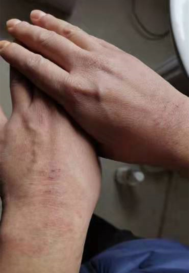 手套去掉后,刘苑的手让人心疼,愿疫情早日结束,我们的白衣天使早点和家人团聚