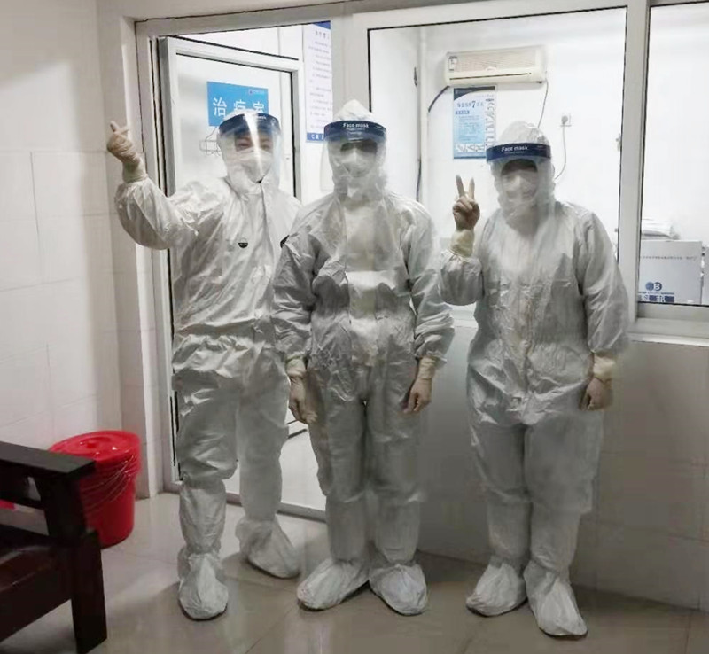 第一批隔离病区医务人员:刘苑(右一)、洪达银(中间)、张晓娟(左一)