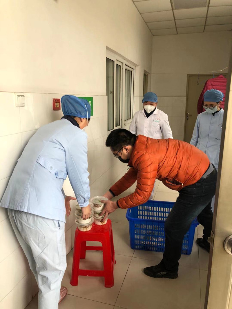 来自金寨红石阁饭店的储总是众多爱心人士中的一位,在得知县医院职工食堂物资、人员缺乏的情况后,他立即联系县医院医务科科长,表示愿意为奋战在一线的工作人员提供免费午餐盒饭,分担职工食堂面临的困难。红石阁饭店远在县城新区,为了让医务工作者吃到热腾腾的饭菜,储总亲自将饭菜打包驱车来到县医院送到医务人员手中。这些热腾腾的盒饭代表了红石阁酒家全体员工对我院抗击疫情一线白衣卫士的一份敬意和关爱。当我们向他表示感谢时,他却说:“你们在一线守护着患者,我们也要尽力守护着你们,不能让你们饿肚子。”送完最后一份盒饭,储总提着空蓝子离开医院,他表示接下来一段时间都会及时将午餐送到医院。