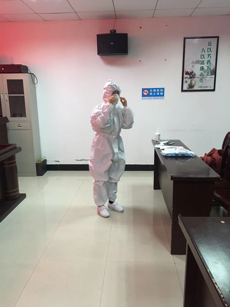 对因工作原因无法集中培训的120急救人员,院感科科长吴晓雪带上防护用品,到科室实地培训示范。确保防护知识人人知晓,时时谨记。