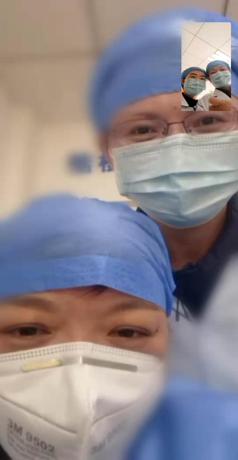 (江寒秀副院长、吴晓雪科长和隔离病区刘苑、杨文平视频沟通、指导防控工作落实)
