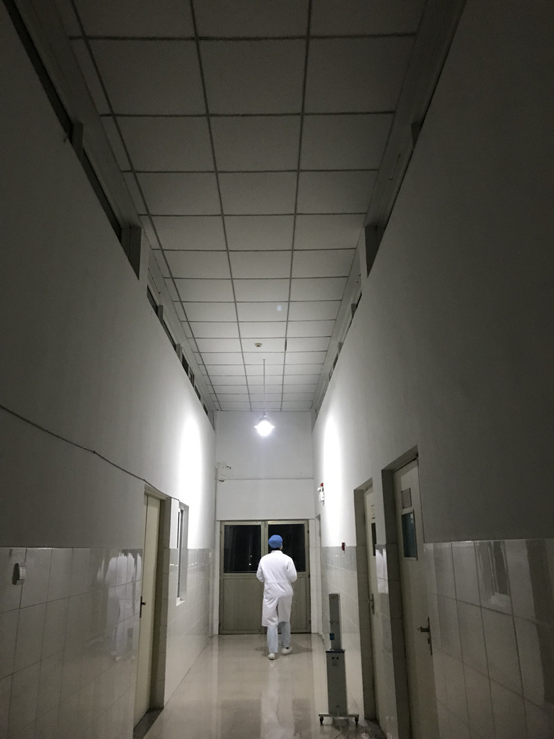 夜幕下,隔离病区的走廊,白衣天使仍然在工作!