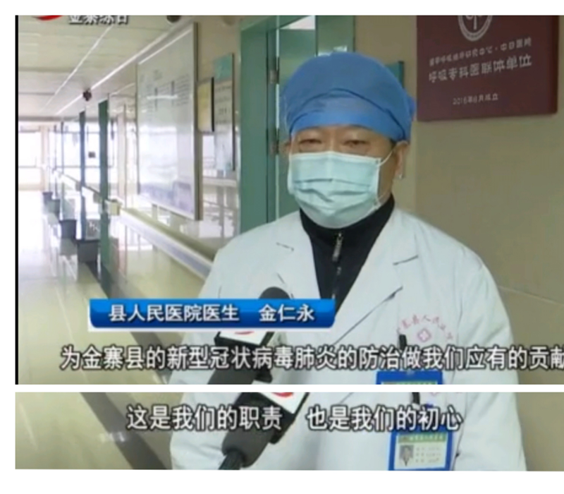 普内科主任金仁永曾在2003年“非典”期间曾被评为“全省抗击非典先进个人”,作为享誉全县的呼吸内科专家,他在呼吸道疾病诊治方面有着丰富的经验,其敬业精神尤为值得人钦佩。此次,疫情来袭,大病初愈,仍需休养的金仁永临危受命,再度披甲上阵,成为院内救治专家组的重要成员,始终坚守在工作岗位上,和其他同道一起全权负责对高度可疑病例进行会诊,决定是否收住入院隔离以做进一步检查。形势严峻的疫情在前,全县人民的希望在后,金主任所在的专家组每做一个决定都会对人民群众产生直接的影响。重担的压力不言而喻。然而压力越大,动力越强,他反复询问患者疫区接触史,结合其临床症状、实验室检查及肺部影像学表现,筛查疑似病例。凭借着精湛的专业知识,对新冠肺炎的高度的认识性和敏感性,准确地研判和科学地处置,为全县的疫情防控做出了重大的贡献。
