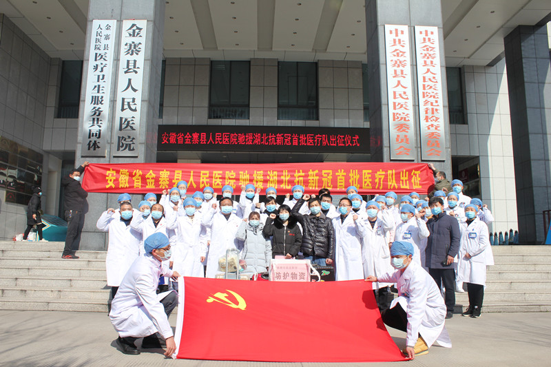 金寨县人民医院于2月9日凌晨接到上级通知后,在第一时间快速反应,立即发布通知,全院广大医务人员积极响应,不到半小时,报名人数就达100余人。经过院领导班子深思熟虑,综合个人专业特长、身体、心理素质、工作阅历等因素,最后决定选派普内科护士长、主管护师吕绍蕊、主治医师陈录坤、急诊科主管护师文道琴3人作为金寨县人民医院首批驰援湖北医疗队成员。在短短时间内,便完成医院医疗队组建,以及物资的准备工作。为阻击新型冠状病毒肺炎疫情作出应有的贡献。