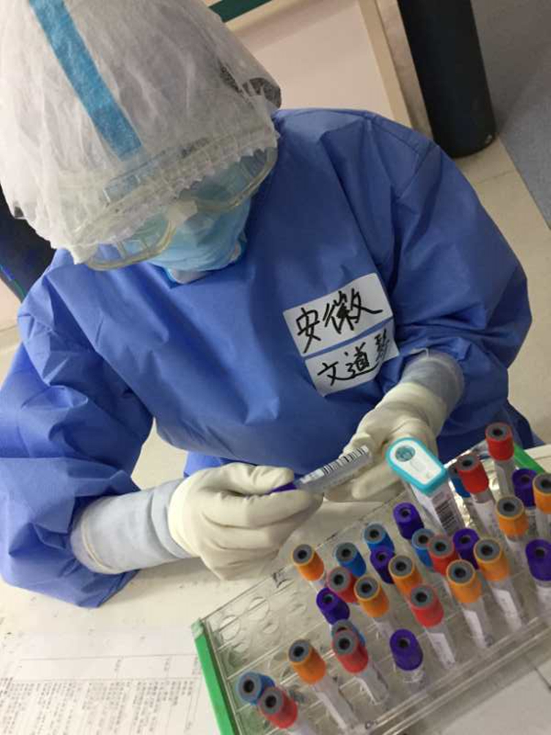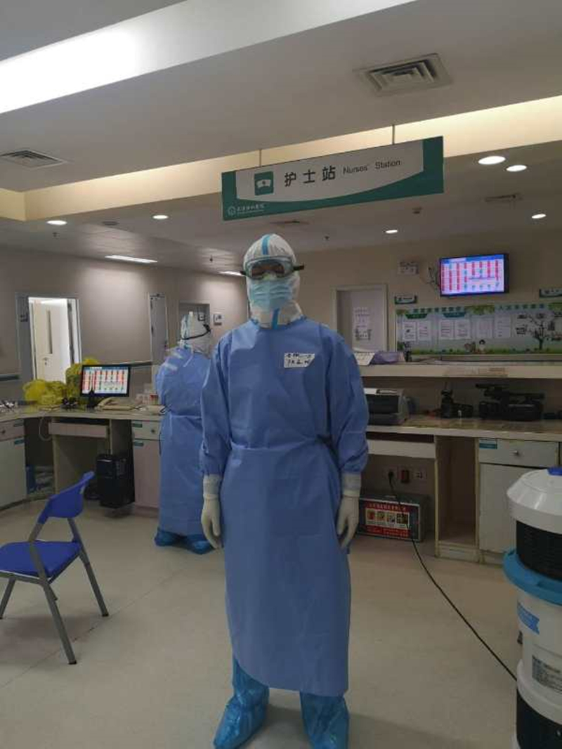 在工作上,由于我有一定的管理经验,在方舱被任命外围管理工作,主要负责方舱的感控工作。在协和,也是进行外围管理协调,做好保障工作。文道琴是急诊急救专科护士,则是精心护理病人。陈录坤是主治医师,则是发挥着专业特长,救治新冠肺炎患者。我们都齐心协力,为抗击新冠尽绵薄之力。印象最深的一件事,则是军事科学研究所所长曹务春,他是少将,一名将军。此次疫情,他带着他的专家团队,不分昼夜地工作,深入一线进行科学研究,他总是那么的平易近人,和蔼可亲。在为我们方舱进行第三次环境学监测的时候。他叫我在他的防护服上写上“军民团结如一人,试看天下谁能敌”。这是我们伟大领袖毛主席的杂言诗里的句子。告诉我们团结的力量。我们众志成城,守望相助,一切都可以战胜!