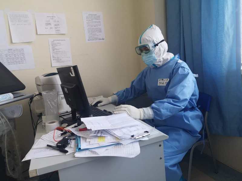 在生活上,我们相互照顾。虽然我年长些,但是陈录坤作为队内唯一男同志,总是照顾着我和文道琴。文道琴很瘦弱,由于跟班倒,连轴转。作息时间不规律,吃饭不能准点。每次早上或晚上回来,都是陈录坤提前把盒饭领好,待她回来后热好,再送给她。他每天把天气预报发到群里,提醒着大家注意添减衣服。上班前总是叮嘱我们要吃些士力架,甜食可以增强饱腹感,可以愉悦心情。虽然是些简单的事,也是每天持续着做。我们都打趣道:陈录坤是我们的“小闹钟”。时刻提醒大家,让人暖暖的。让我们始终有强壮的身体,更好的战斗。