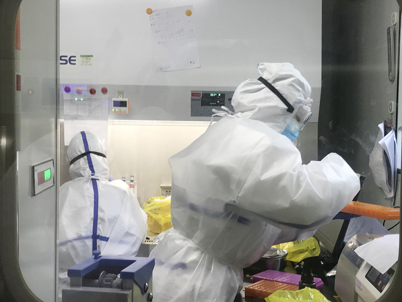 鉴于之前临床如遇疑似病例时,需要将样本送至市里进行检测,在这分秒必争的“战争”中既浪费时间也增加了传播病毒的风险,院党委书记、院长吴杰以敏锐的洞察力,看到了严峻形势背后的县域需求和倒逼动力,筹措调动各方资源,于3月31日启动了基因扩增检测实验室的改建工作。借力引智,顺势而为,在中日友好医院帮扶专家、检验科杨辉硕士的积极指导下,通过人员培训、设备安装等一系列精心准备,于4月15日在院内开展了核酸检测的预实验;4月17日,顺利通过了六安市卫健委组织的P2实验室专家评审,分子室的安全性能符合检测要求;同时参加国家卫健委临检中心组织的新冠病毒核酸检测室间质评活动,质评结果满足检测要求。4月18日,六安市负责新冠检测的评审专家认为我院分子室的建设完全符合生物安全要求,安全性和技术性的条件都已具备。当天,医院对等待复学的学生开展批量采样,真正实现了县域内核酸检测能力,并成功跻身全省新冠肺炎核酸检测首批“侦察”战队。截止到4月26日晚,已完成了1587份样本的核酸筛查检测,检测结果均为阴性。