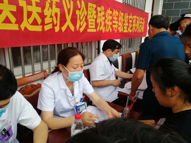 上午7时许,当地群众闻讯赶来早早排起了队,由于专家组行进途中突降暴雨,王兴委员与大家沟通后坚持不推迟时间。专家组一下车立即换上工作服,帮助来诊群众细致体格检查、根据病史建议治疗方案、发放常规药品……受大雨影响,部分腿脚不方便,准备参加残疾鉴定的农户无法前往现场,专家组二话不说协同联系村负责同志赶赴家中为其进行残疾鉴定。通过医共体政策宣传,根据就医群众需求给予治疗建议,现场共诊治就医群众300余人,免费发放8000元药品,发放医共体政策宣传资料200余份,为近40名群众现场进行了残疾人等级鉴定。
