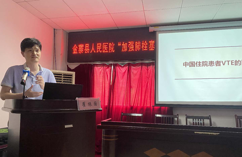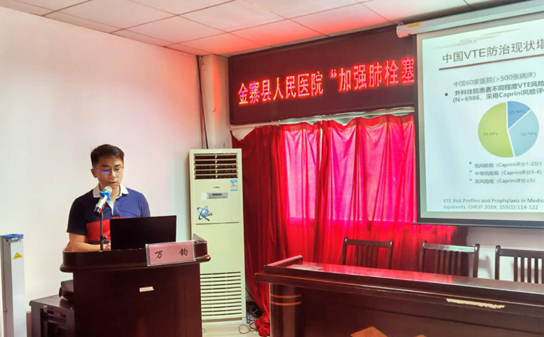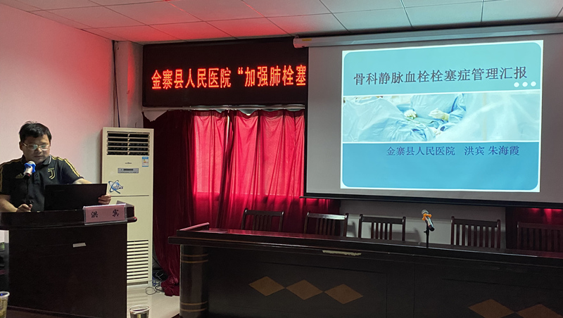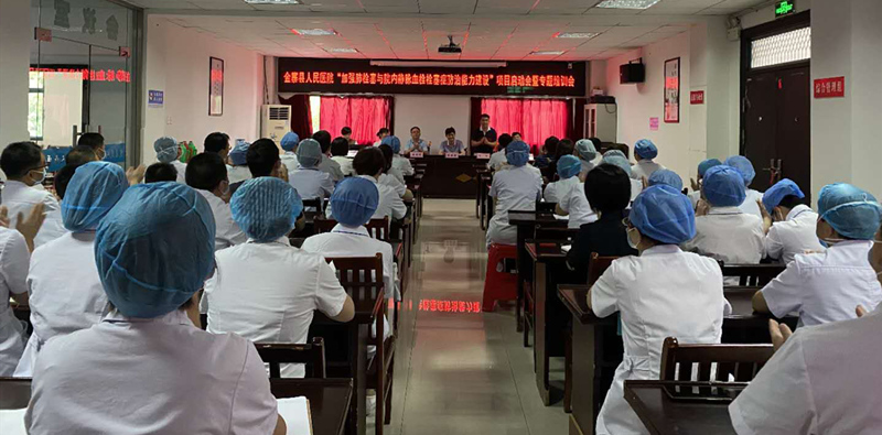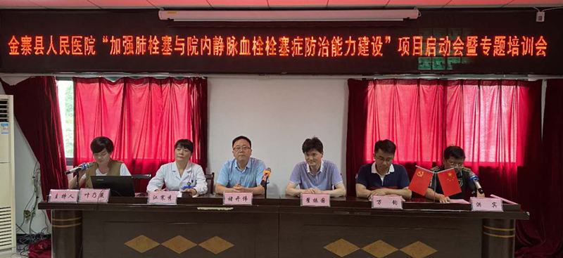 2020年6月10日,金寨县人民医院“加强肺栓塞与院内静脉血栓栓塞症防治能力建设”启动会暨专题培训会在六楼会议室成功召开。江寒秀副院长致开幕词,医务科科长叶乃燕主持会议。会议特邀北京中日友好医院呼吸与危重症医学科主任医师翟振国教授讲授《肺栓塞与深静脉血栓形成防治进展》,北京中日友好医院驻点帮扶专家、金寨县人民医院副院长万钧博士作《院内静脉血栓栓塞症风险评估与预防实施》专题报告。