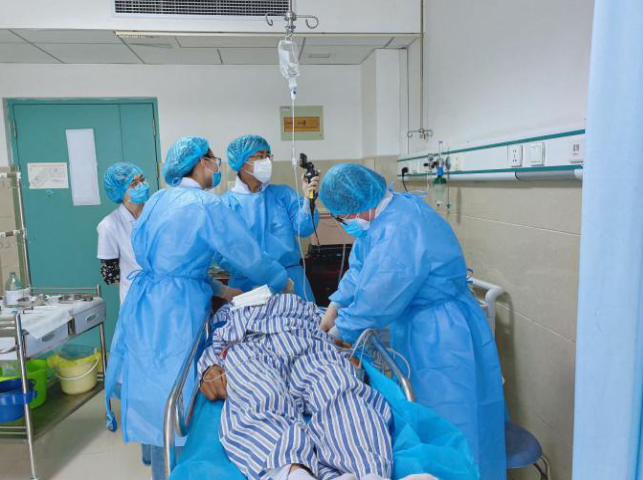 6月17日下午,在中日友好医院万钧博士的带领下,金寨县人民医院呼吸与危重症医学科成功完成了首例支气管镜下异物取出术。