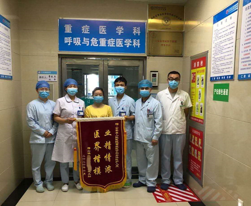 6月22日上午,患者窦某女儿将一面写有“业精情浓,医界楷模”的锦旗送到县人民医院重症医学科医护人员的手中,对重症医学科医护人员给予的及时救治和精心护理表示感谢。