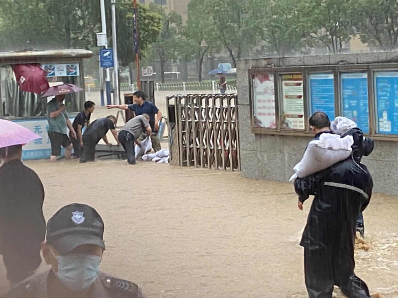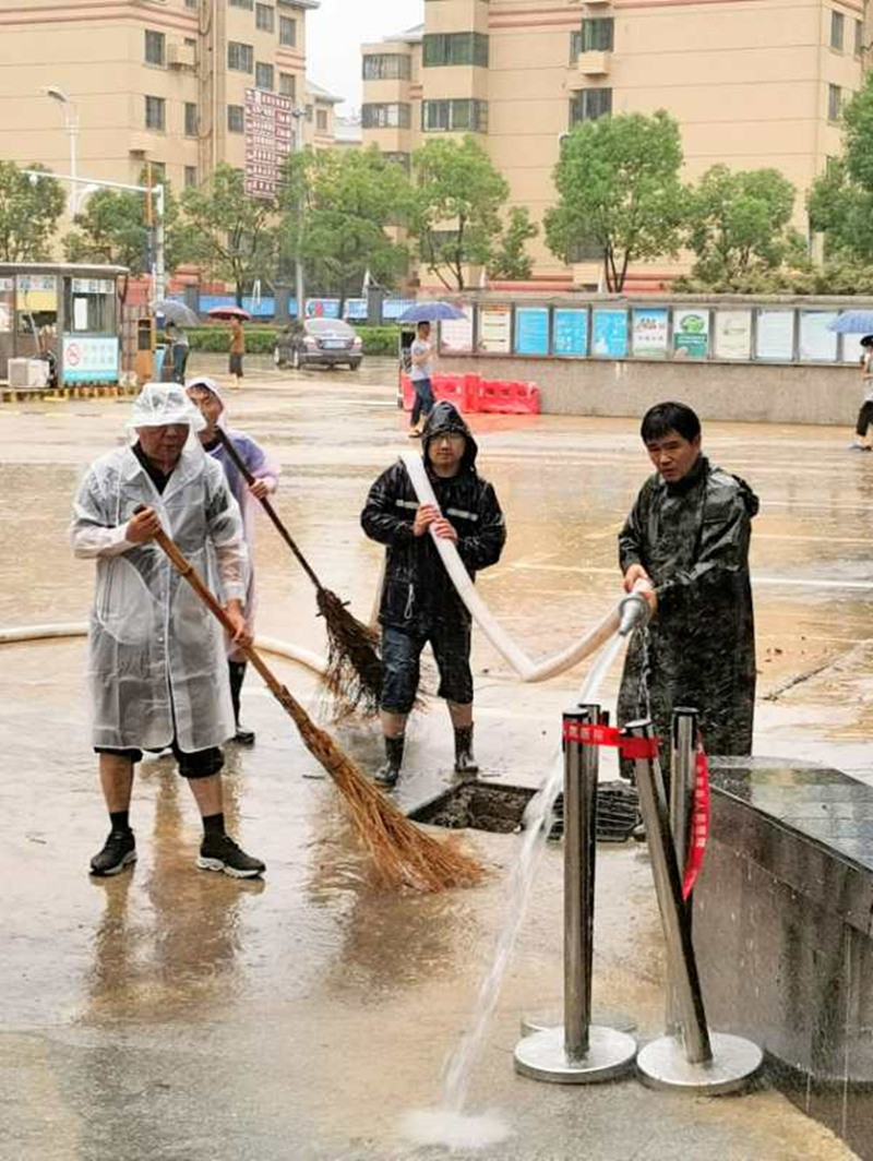 7月18日早上8点半左右,我院门急诊楼内涝严峻。汛情就是命令!吴杰院长、李学川副院长亲自带领总务科及院抗洪抢险青年突击队赶赴现场,调运防洪沙袋等物资,依次叠压在各通道上。倾盆暴雨,却丝毫阻挡不了大家保卫医院的决心,扛沙袋、通管道......每个人分工明确,上午10时左右,院内积水已散去,这期间,大家顾不上休息一分钟。洪水散去之后,看着满院的污泥,大家再次拿着扫把,拖把,自来水管,清洗各个角落,同时安排专人对受灾区域及时进行消杀,整个过程齐心协力,有条不紊的进行。