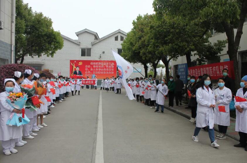 2020年4月10日上午,金寨县人民医院援鄂英雄吕绍蕊、陈录坤、文道琴在指定地点隔离修整14天后,终于圆满完成任务,平安返回金寨!