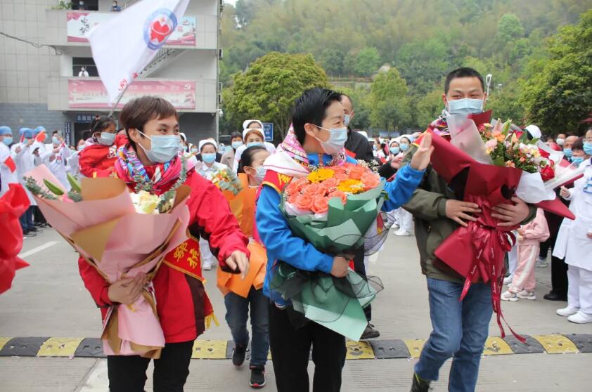 援鄂医疗队队长吕绍蕊动情的说道:“我们没有辜负党和人民的信任与重托,顺利完成了任务,平安归来!”驰援湖北是人生中最难忘也是最宝贵的经历。在一个多月的时间里,他(她)们与其他医疗队员一起,克服重重困难,团结一心,打了一场漂亮的疫情阻击战。而在前方英勇战“疫”的同时,他们也收获了来自县委县政府、县卫健委、县人民医院领导同事及家人朋友的关心、关怀,让他(她)们能够解除所有后顾之忧,全身心地投入工作。面对疫情,他(她)们逆行出征;今朝归来,他(她)们整装再战。3位白衣战士接受一段时间休整后将重返各自工作岗位,与同事们一起为取得抗击疫情的最后胜利、保卫人民健康继续战斗。