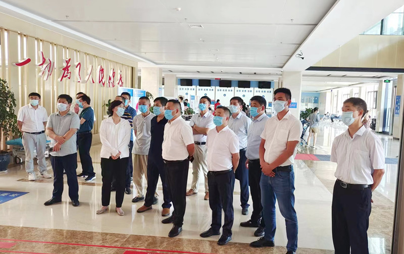 8月3日上午,宿松县副县长李锦荣带领卫健、医保、市监局、人社局、编办及相关医院负责人来我院考察交流综合医改工作。县卫健委党组书记、主任李锋,县人民医院党委书记吴杰陪同。