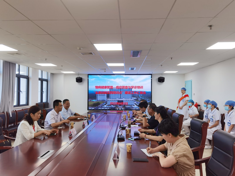 实地考察结束后,张永亮主任一行来到行政楼五楼会议室就《慢病健康管理——癌症筛查与早诊技能实践培训点》建设的相关工作展开座谈交流。院党委书记吴杰出席座谈会,副院长吴昌武汇报了培训点建设的筹备工作。吴杰书记认真听取了张永亮主任对国家《慢病健康管理——癌症筛查与早诊培训》的相关政策与要求的介绍,对张永亮主任一行的到来表示欢迎,并对能遴选金寨县人民医院为安徽省首家《慢病健康管理——癌症筛查与早诊技能实践培训点》表示感谢。吴杰书记指出:县人民医院将认真办好《慢病健康管理——癌症筛查与早诊培训点》工作,利用这个平台和机会,大力提升我县癌症防治能力及健康管理水平,为老区百姓做好健康的守护人。
