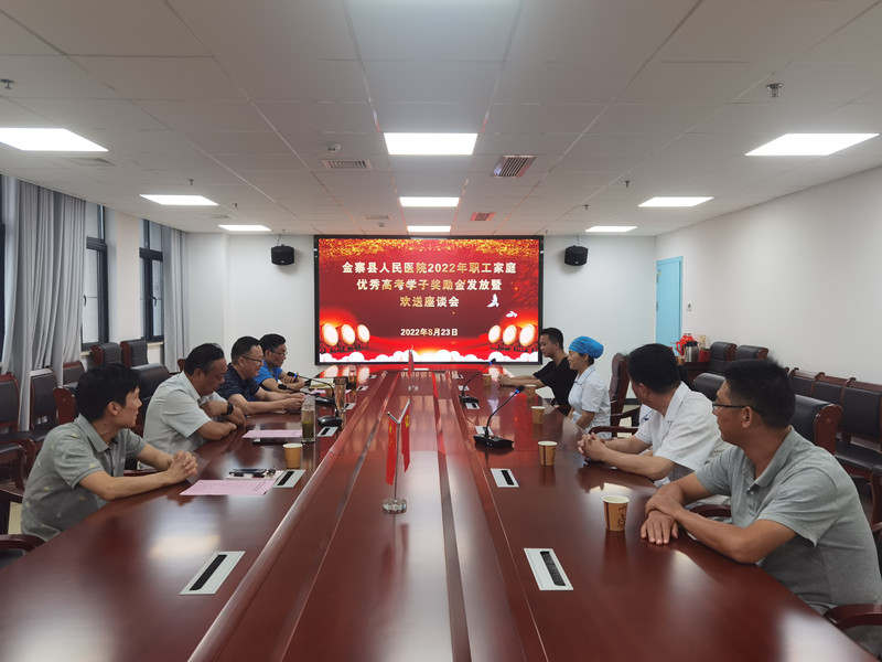8月23日下午,金寨县人民医院2022年职工家庭优秀高考学子奖励金发放暨欢送座谈会在医院新院区行政后勤综合楼五楼会议室举行。褚开伟院长主持会议,院党委书记、关工委名誉主任吴杰出席座谈会并讲话。