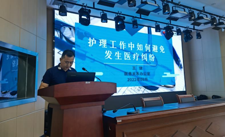 会上,医患关系办公室主任王健就护理工作中如何避免发生医疗纠纷进行培训,他重点对近几年院部存在的护理安全问题进行分析反馈,警示全院护理人员要增强安全意识,提高警惕、落实慎独精神及各项护理核心制度。