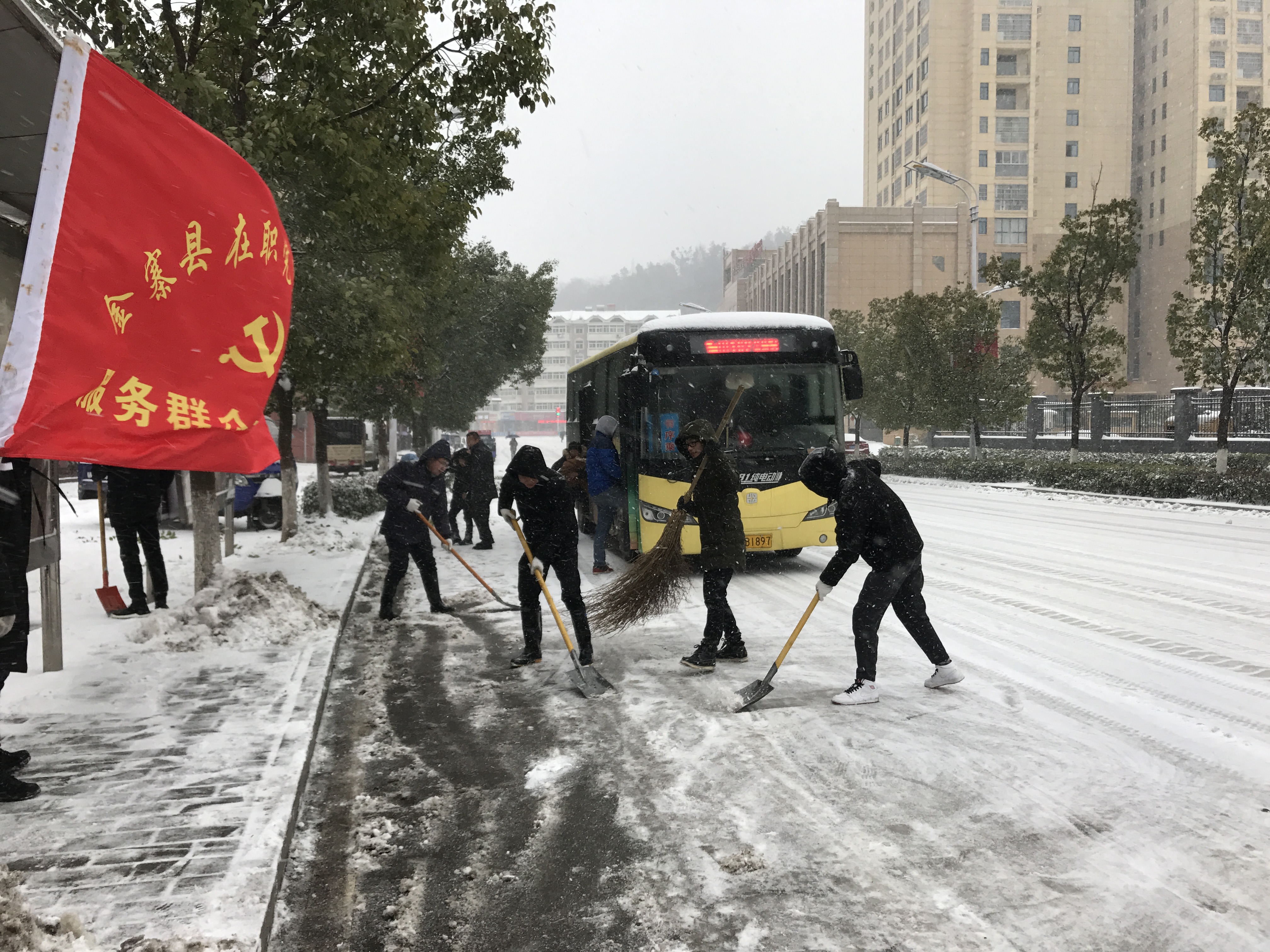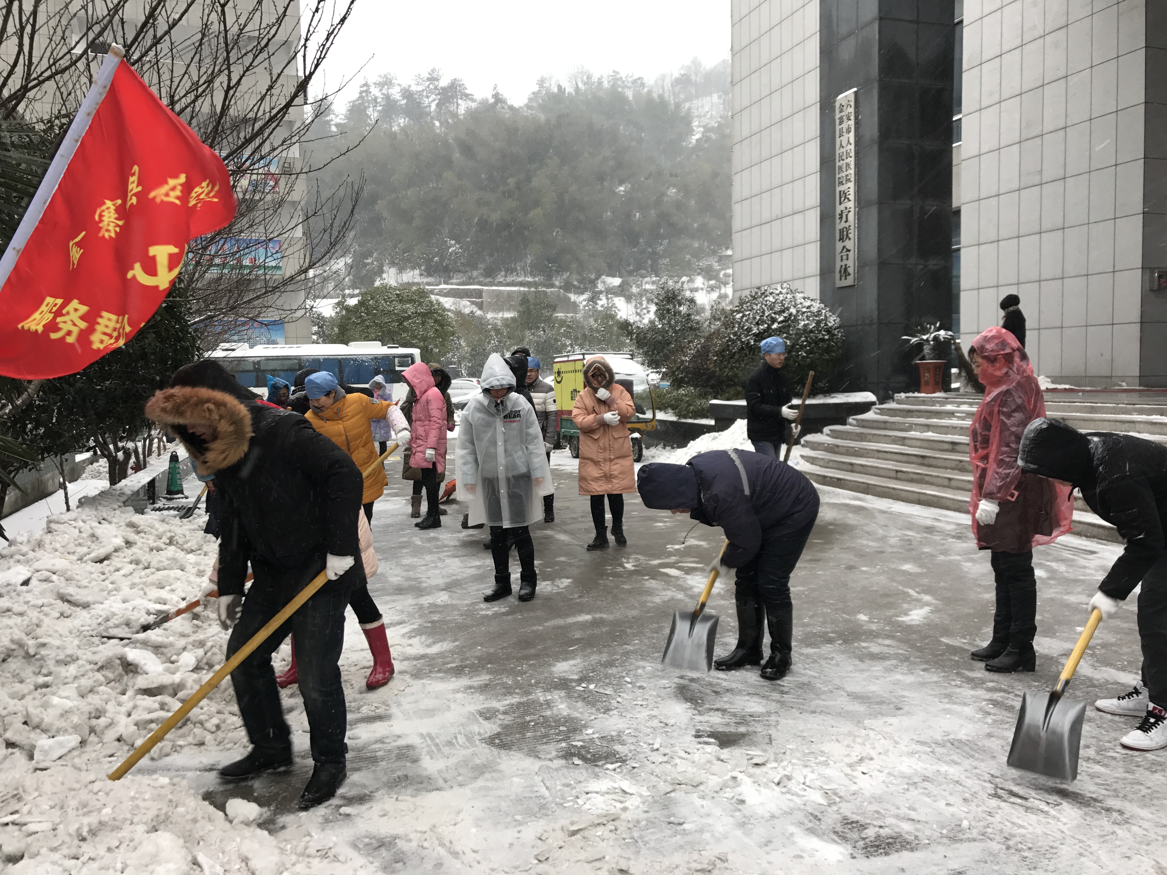 1月24日,大雪如期而至,为保障院区道路正常通行,包保责任区园林绿化带免受大雪损坏,县人民医院迅速成立了以院主要领导为组长、副组长,所有行政科室人员为成员的“除雪护绿”小组。