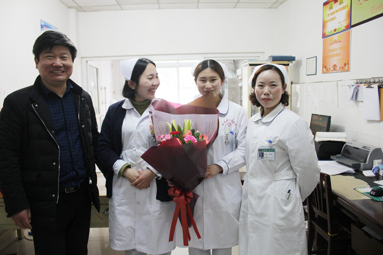 美丽女人节,情暖三月天。女人如花,娇艳动人。第108个“三八”国际劳动妇女节来临之际,3月8日上午,县人民医院副院长李学川、江寒秀带领相关科室负责人亲切慰问了全院临床科室和医技科室的“白衣天使”,对她们兢兢业业、无微不至、精心呵护的职业精神表示赞赏,并为“白衣天使”们送去鲜花和节日祝福。这一刻,温暖流淌在每一位护士的心田。