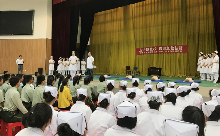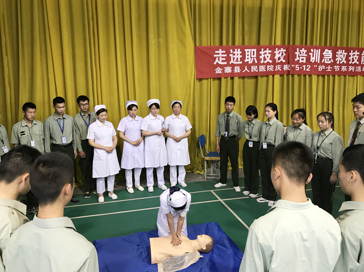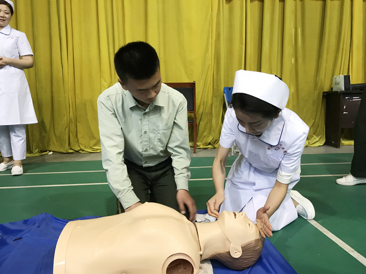 5月9日下午,院关工委积极组织,副院长江寒秀、护理部主任林雪梅、皮新平的带领下,心内科主治医师徐珍及金寨县人民医院急救小组一行来到了金寨县职业技术学校,把急救技能培训送进校园。