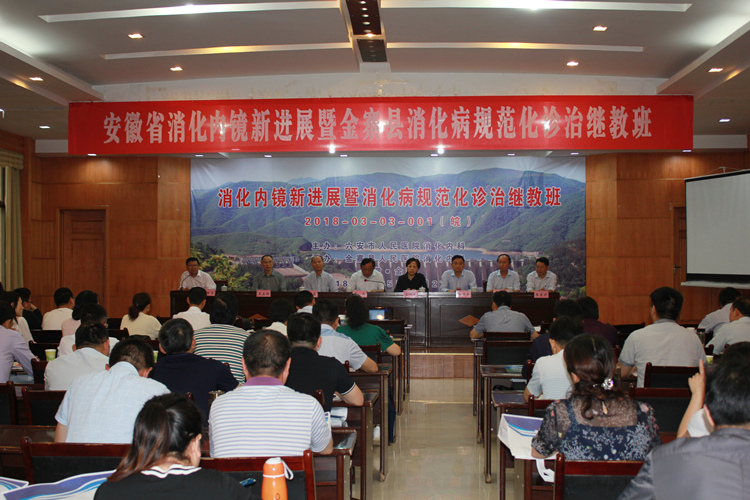 5月26日,《安徽省消化内镜进展暨金寨县消化病规范化诊治继教班》在我县顺利召开,参加此次会议的有安徽省各医疗机构消化内科负责人以及我县乡镇卫生院、社区卫生服务中心分管领导共计120余人。会议由六安市人民医院消化内科主任汤海涛主持,金寨县人民医院吴杰院长做开班讲话,特邀中国科学技术大学附属第一医院消化内科主任王巧民、吴正祥教授,皖南医学院弋矶山医院消化内科韩真主任、安徽医科大学第一附属医院王亚雷、陈熙教授和六安市人民医院的专家前来授课。