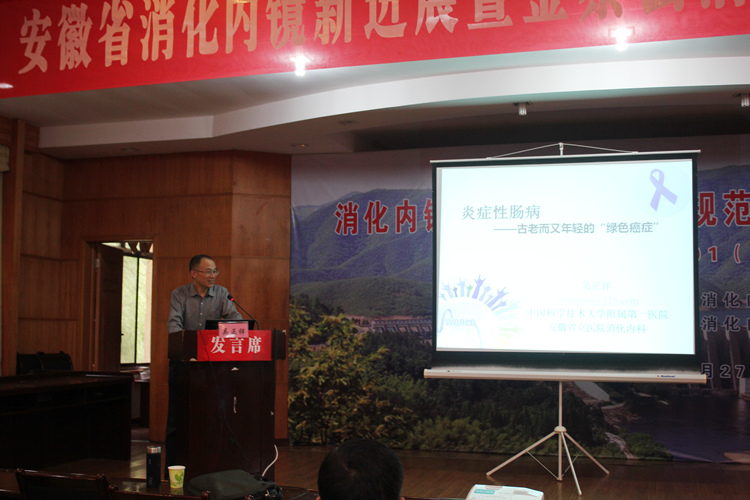 首先由中国科学技术大学附属第一医院的王巧民教授和吴正祥教授分别为大家带来了关于《IBD,我们同行》和《炎症性肠病——古老而又年轻的“绿色癌症”》的培训,两位教授分别围绕炎症性肠病从病因、诊断以及治疗方法等方面做了详细的介绍;皖南医学院弋矶山医院消化内科韩真主任围绕《早癌的识别和ESD新技术的应用》详细讲述了内镜下早癌的识别、内镜黏膜下剥离术等一系列的知识;安徽医科大学第一附属医院的陈熙教授、王亚雷教授分别对《小肠镜的临床应用》和《ESD围手术期的规范化管理》进行了介绍;最后由六安市人民医院的专家就消化系统肿瘤、胃食管反流病内镜治疗及内镜黏膜下剥离术进行了详细的讲解。