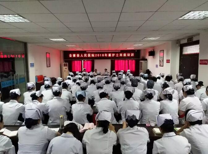 为提高护理队伍的整体素质,规范新护士的职业行为,帮助新入职护士尽快完成由学校的护生向临床护理人员这一角色的转变,尽快地融入到医院严谨、紧张的工作氛围,金寨县人民医院2018年新入职护士岗前培训活动于7月30日下午正式拉开帷幕,副院长江寒秀、院护理部负责人、院关工委成员及各科室护士长和新入职护士共计90余人参与了本次开班活动。