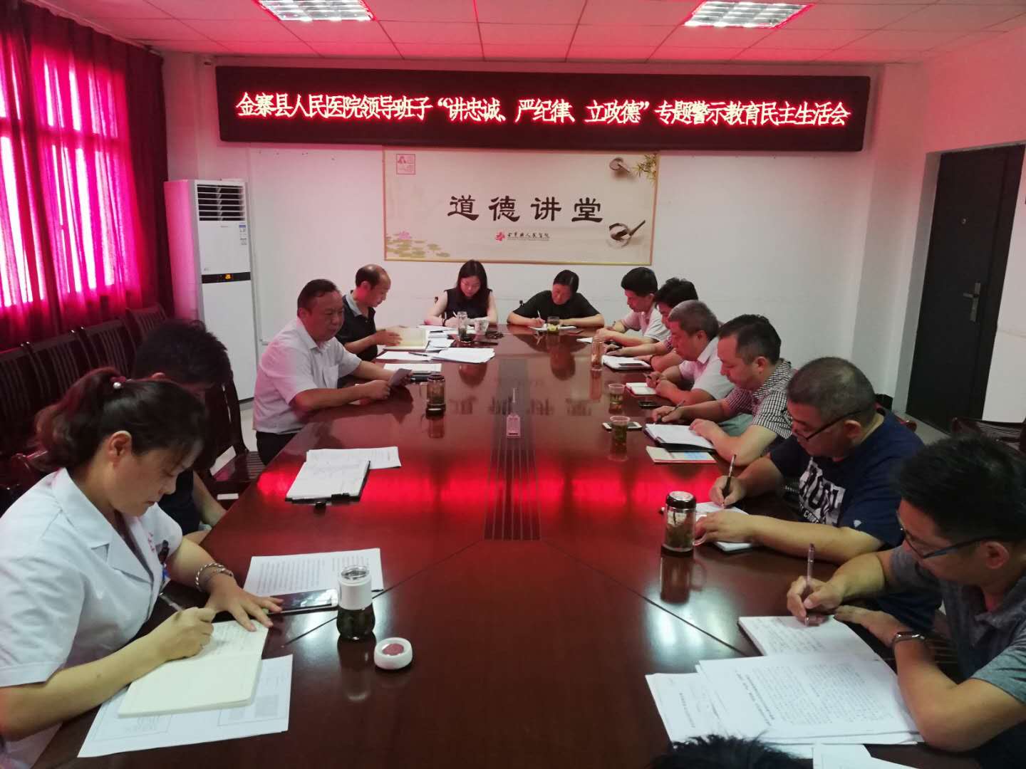 9月3日下午,县人民医院领导班子召开“讲严立”专题警示教育民主生活会。院行政职能科室负责人列席了会议, 会议由院党委副书记、纪委书记黄杰主持。