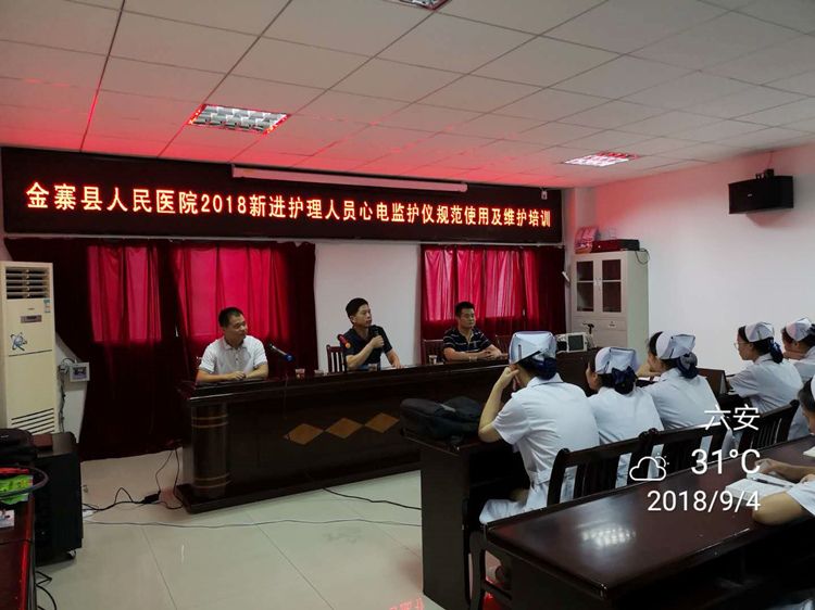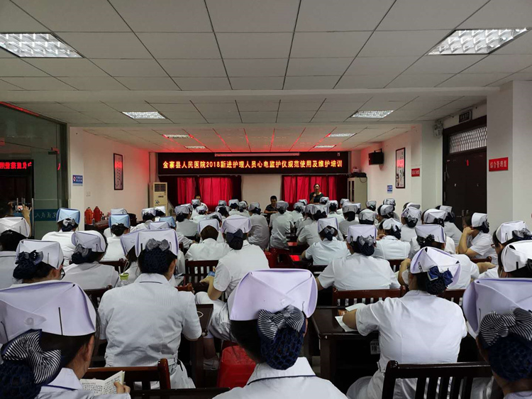 这次培训主要目的是为了更安全使用监护仪,延长监护仪使用寿命,加强新进护士的学习意识。培训会邀请了我院最常用监护仪厂家的技术专家现场讲授并现场操作演示,经过近两个小时的培训,大家了解了监护仪每一个参数的基本测量原理、一般的安全使用常识和仪器特殊功能在临床上的应用,并以现场操作演示的互动形式,就护理人员在使用过程中的操作规程进行了精心指导,培训内容受到参加培训人员的好评。