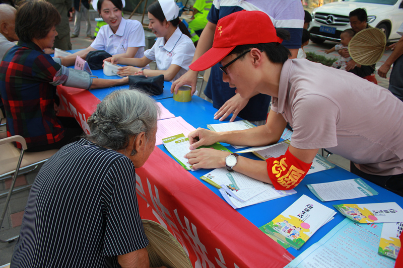 为进一步落实全县创建文明城市工作,弘扬“奉献、友爱、互助、进步”的志愿精神,提高社区居民健康保健意识,9月19日下午,县人民医院关工委、团委组织医院各支部志愿者来到红村社区所属辖下金盛广场开展志愿服务活动。