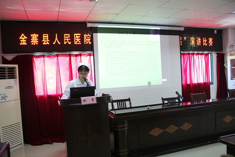 金寨县卫计系统医德医风教育学习活动刚刚落下帷幕,9月28日上午,我院护理部在六楼会议室举行首届内科系统“护理观察个案”演讲比赛,旨在提高临床护理人员病情观察、评估、应急处理的水平,展现护理人员在临床护理工作中敏锐的预见病情、观察病情的能力,提高临床护理质量,为患者提供更优质的护理服务,进一步树立“以病人为中心”的服务理念。活动由护理部干事周雅琴主持,分管院长江寒秀、护理部主任林雪梅、副主任皮新平及全体护士长参加。